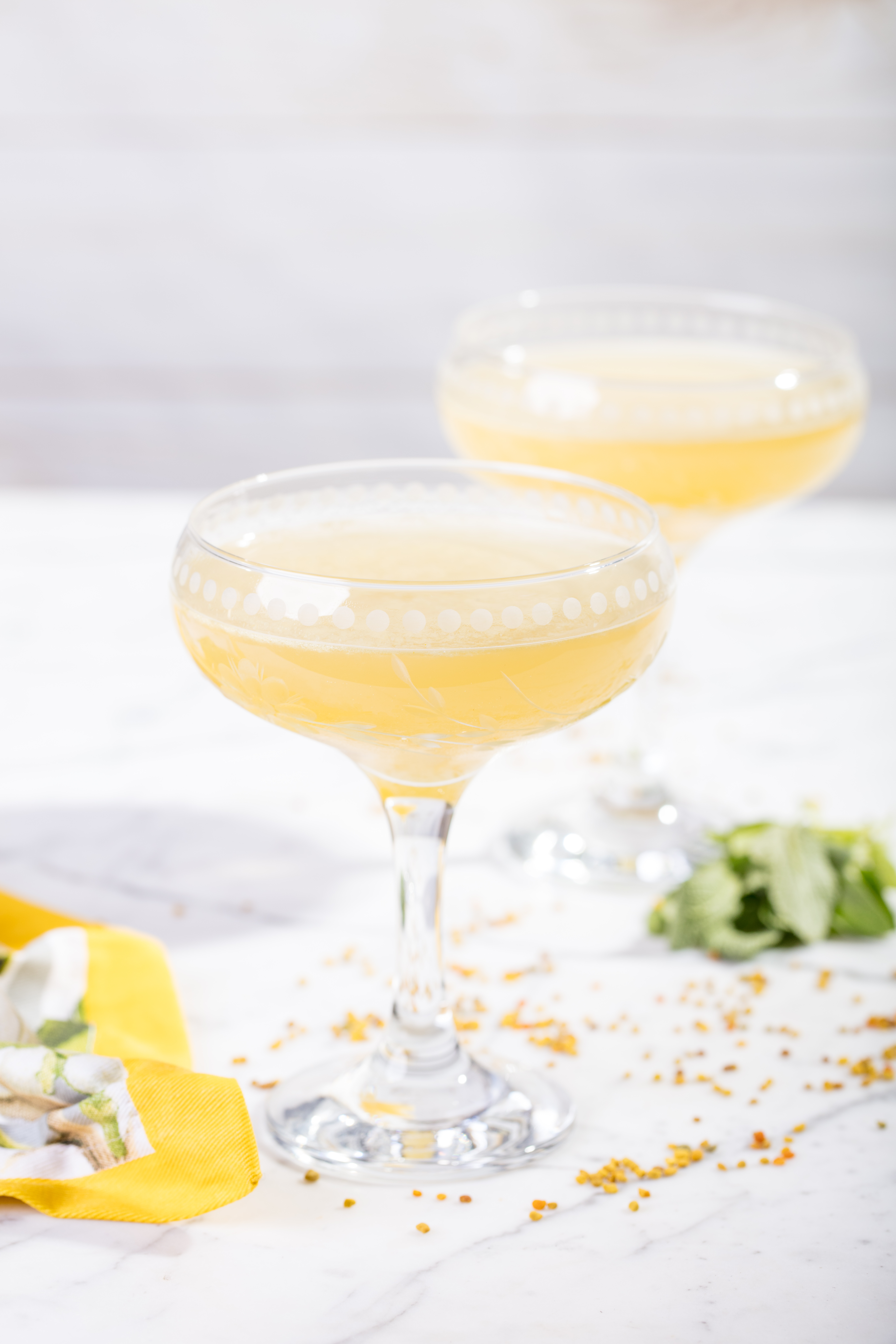 Build gin, lemon, honey syrup and bitters in a shaker tin with ice, shake for 7-8 seconds. Strain with Hawthorne strainer through double strainer into a small chilled coupe glass.